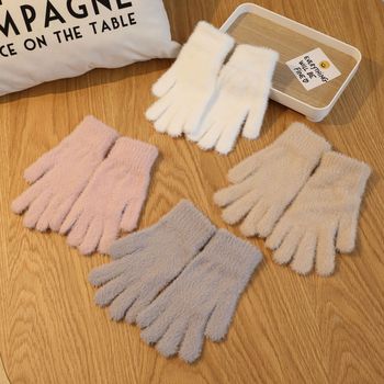 Inverno Quente Acrílico/Algodão Touchscreen Pulso-Comprimento Cinco-Dedo Luvas para Ciclismo & Ski Sports Design Minimalista Cor Sólida